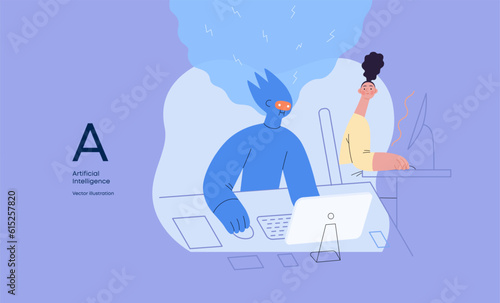 Metaverse vector. Future technology illustration. Woman using vr headset for game or business. Futuristic innovation, virtual space for working and communication