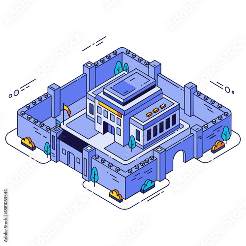 Metro station, flat vector illustration. Isometric city street cross section with subway entrance, train, tunnel, railway platform, escalator, entrance gate, ticket machine, information stand.