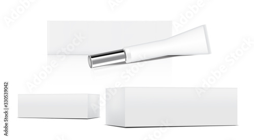 Mint chewing gum ads template, vector illustration. White blank pad and slab bubble gum package mockup, paper cut green mint leaves, falling bubblegums with peppermint flavour.