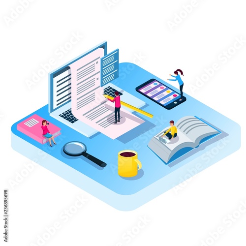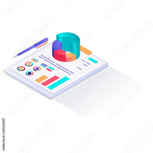 Mobile analytics concept flat vector illustration. Isometric smartphone screens with charts and graphs. Users interaction with mobile sites and applications.