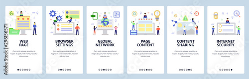 Mobile app onboarding screens. Hardware tools, search evidence, pharma science research. Menu vector banner template for website and mobile development. Web site design flat illustration.