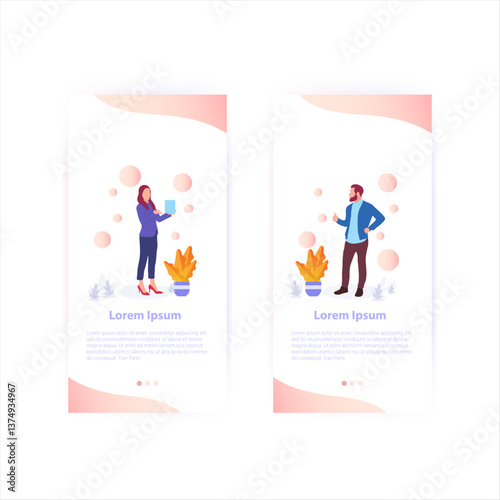 Mobile app onboarding screens. International news, media, article and newspaper column. Menu vector banner template for website and mobile development. Web site design flat illustration.