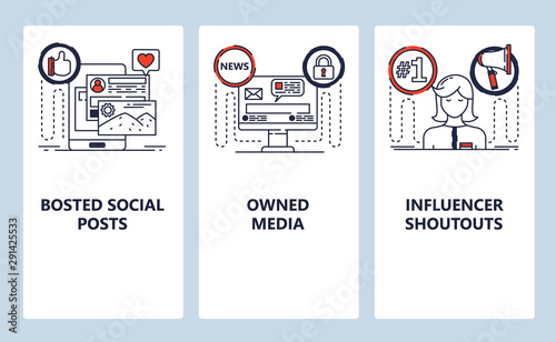 Mobile app onboarding screens. User profile, update and content sharing, computer settings. Menu vector banner template for website and mobile development. Web site design flat illustration.