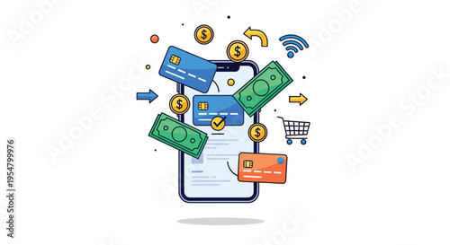 Human hand holding smartphone with flying up rocket, school supplies, education and science symbols. Vector illustration in paper art craft style. Mobile education app concept.