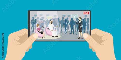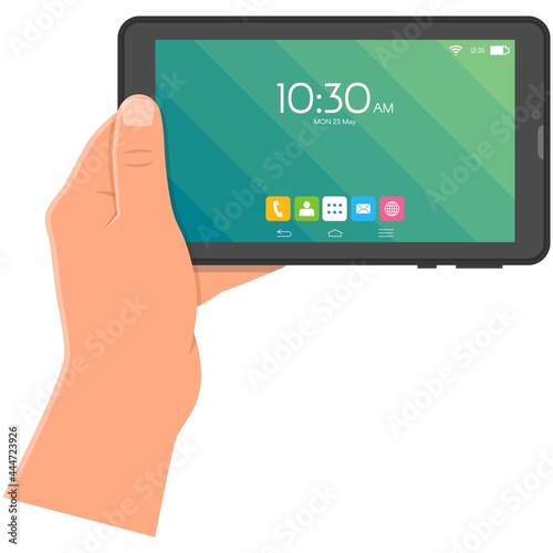 Mobile games, vector flat style design illustration. Mobile user playing space walking video game. Gamification, gaming app concept.