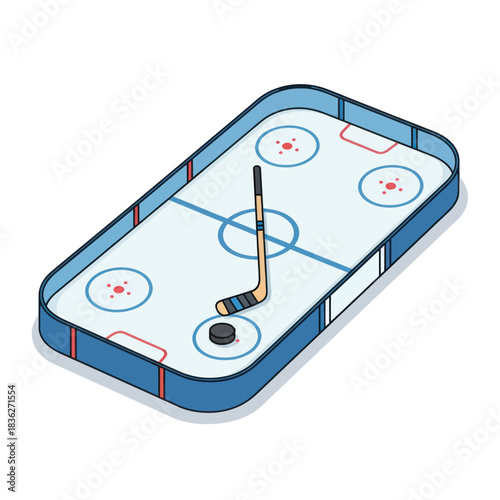 Mobile ice hockey, flat vector illustration. Isometric hockey rink, players and scoreboard on smartphone screen. Online sport game competition.