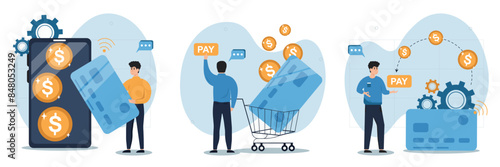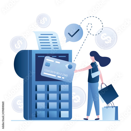 Mobile payments with smartphone. Near field communication payment terminal concept. Online transactions, paypass and NFC. Cartoon flat style vector illustration.