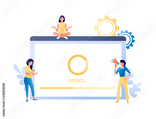 Vector illustration of big mobile phone SIM card and tiny people with megaphone, smartphone. Mobile phone network, wireless communication concept for web banner, website page etc.