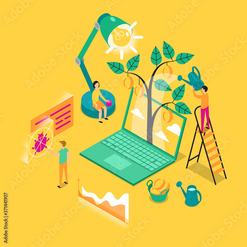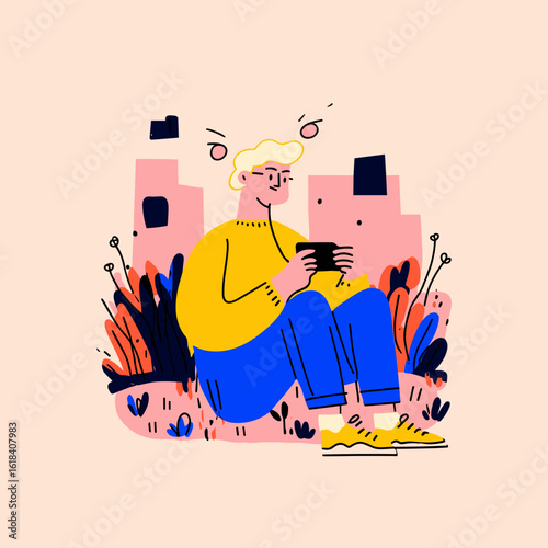 Mobile phone repair concept vector illustration. Man fix broken mobile phone. Maintenance and smartphone service. Man using soldering iron to repair phone.