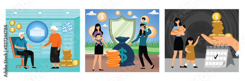 Mobile phone repair concept vector posters set. Man fix broken smartphone. Maintenance and smart phone repair service. Man using screwdriver to disassemble and fix telephone. Technical tools.