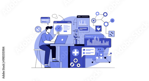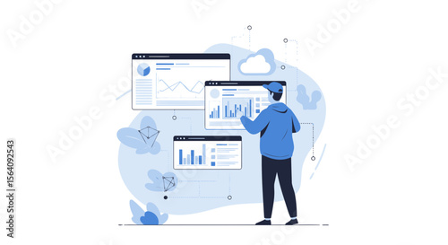 Mobile website development services vector illustration. Web development and design business concept for web banner, website page, presentation etc.