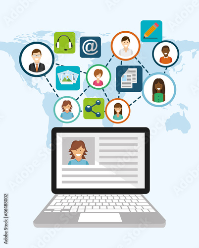 Vector illustration of tiny characters carrying huge laptop computer. Modern electronic gadgets concept for web banner, website page etc.