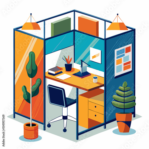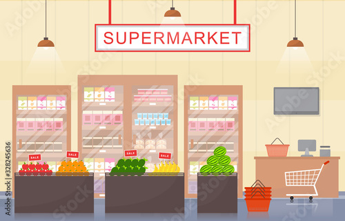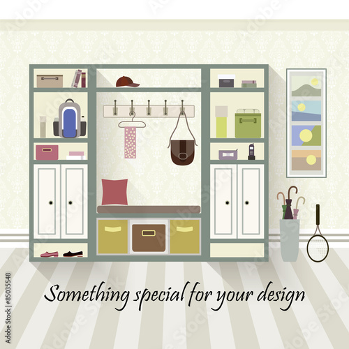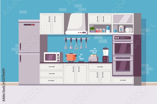 Modern kitchen interior. Vector illustration in flat style. Room furniture, oven.