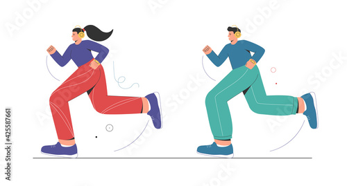 Modern urban teenage boys and girls on skateboard vector illustration. Set of isolated cartoon characters. City skaters have fun and do stunt and tricks. Skate extreme sport.