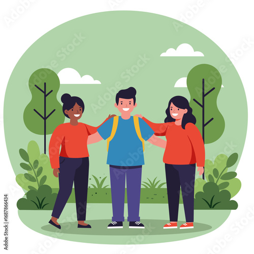 Two women mothers with their kids talking to each other, vector flat style design illustration. Young moms walking, taking rest, chatting in the park.