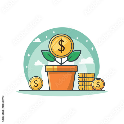 Money tree, gold bars, money bags, arrow chart, flat vector isometric illustration. Investment in gold concept.