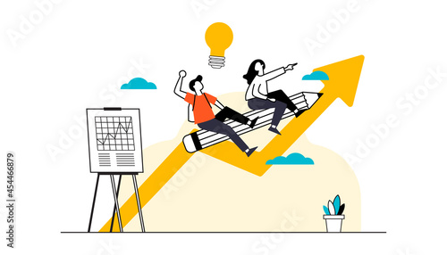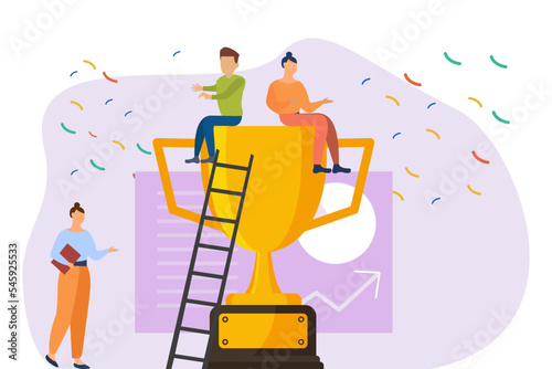 Business people harvesting money while picking dollar coins and banknotes from money tree, vector flat illustration. Financial growth, profit, business success, wealth concept.