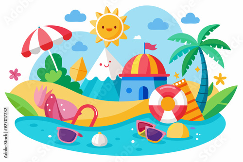 Money work for you concept vector isometric illustration. Happy successful businessman relaxing at tropical beach resort. Money work for him.