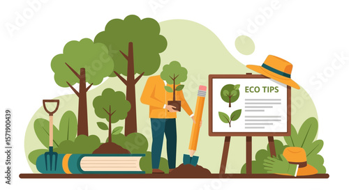 Monument of famous person in city park, flat vector illustration. Bust sculpture of senior man in bowler hat, tuxedo and bowtie.