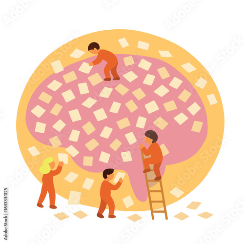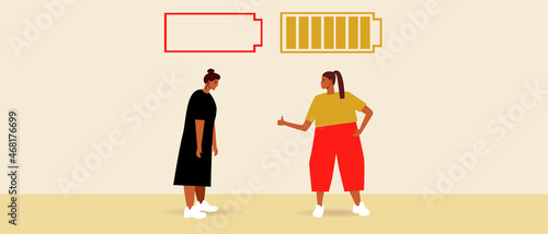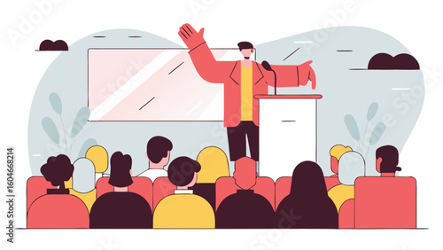 Morning coffee concept vector illustration. People buy coffee in small cafe. Big coffee sign.
