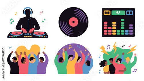 Morning coffee in cafe concept vector illustration. People at a table in a restaurant drink tea. Friends meeting for breakfast. Woman sit on a floor and drink hot tea. Table with tea pot and cups.