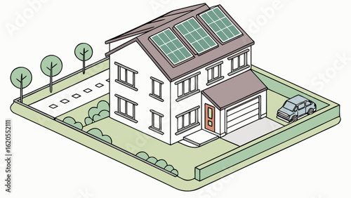 Vector isometric house building standing on dollar banknotes, calculator, stack of coins, percentage sign. Mortgage interest rates concept.