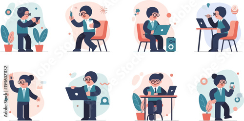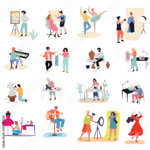 Motion graphic specialists cartoon character set, vector flat isolated illustration. Talented and creative team of design and marketing professionals. Animation and motion graphics studio staff.