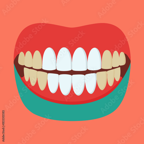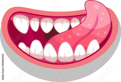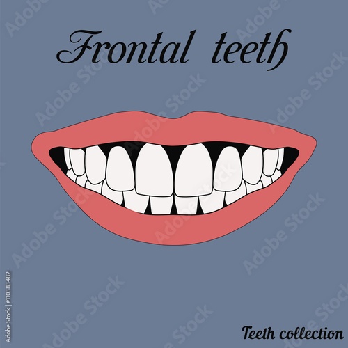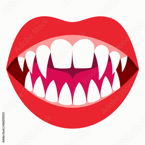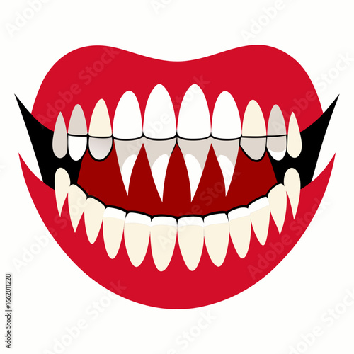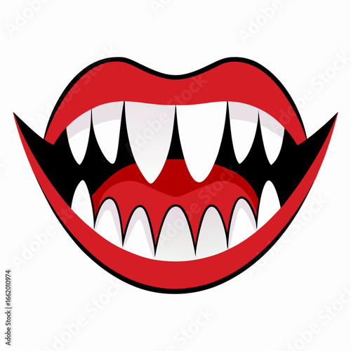 Mouth smile with teeth vector. Scary halloween monster or joker character expression with creepy toothy grin isolated on white background