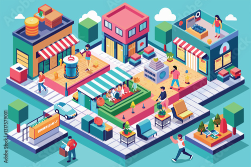 Movie theater building in isometric style design. Vector flat 3d icons. Interior of cinema, cafe, ticket office.