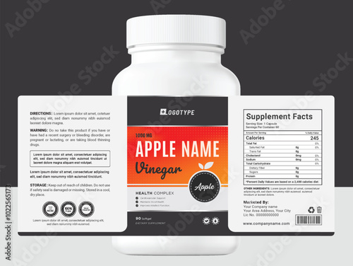 Vector realistic swirl of vitamin balls, vitamin complex plastic bottle package design mockup, copy space on blue background. Multivitamins and minerals advertising poster, flyer design template.