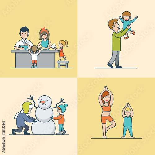 Happy young and elderly couples watching music concert online at home from laptop computers, vector flat illustration. Live streaming virtual concert.