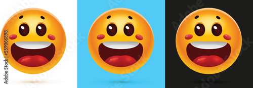 Music emoji icon set. Vector illustration of emoticons wearing headphones isolated on white background.