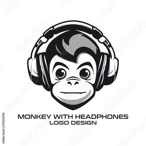 Monkey with headphones t-shirt vector grunge illustration. Chimpanzee listening to music.