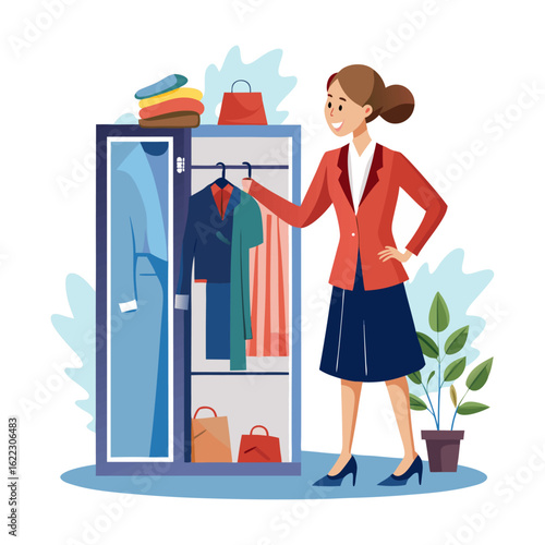 Happy muslim women in perfume store, flat vector illustration. Arab girls in traditional clothing, hijab with shopping bags. Perfumery, department store interior with shelves full of perfume bottles.