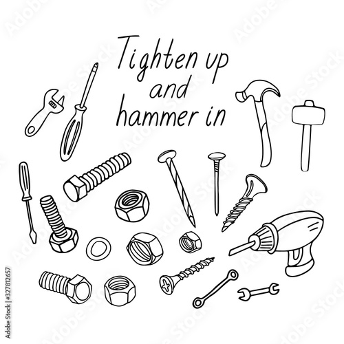Nails screw-bolt isolated isometric vector illustration set. Engineering fastening tool different form, shape and position isolated on white background