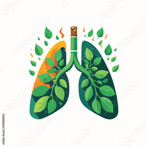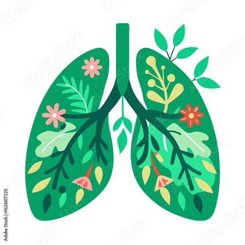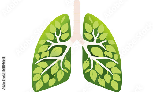 Nature lungs with leaves inside, vector illustration in paper art style. Green lungs of planet Earth. Save nature, environment, ecology.