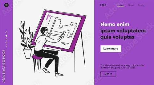 Nature vector website template, landing page design for website, mobile site development. Paper cut bear silhouette with forest landscape, elk inside. Beauty of nature. Save animals, protect wildlife.