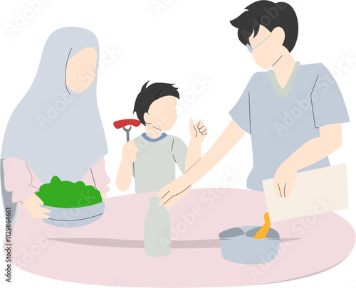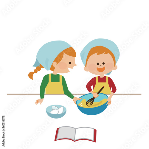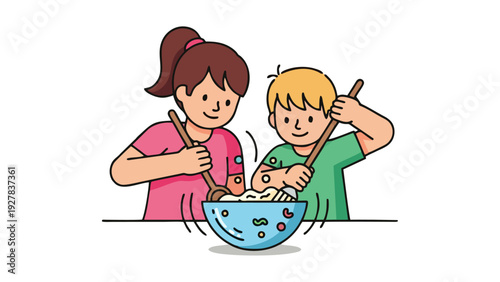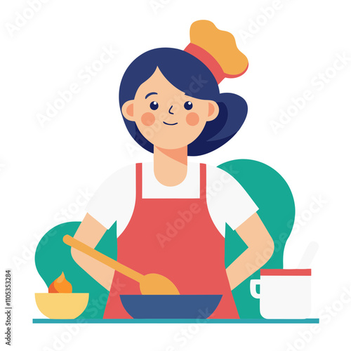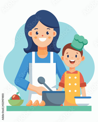 Naughty daughter interfering with mom cooking vector icon isolated on white background