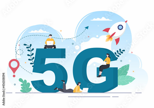 Network 6g technology vector. High speed wireless connection. Digital communication, telecommunication and global internet concept. Creative number poster with cityscape design