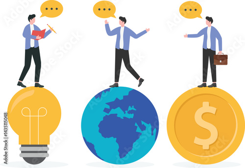 New ICO or initial coin offering concept vector illustration. Successful promotion of new cryptocurrency project.