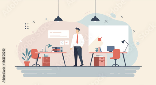 Flying saucer spaceship with astronaut pilot startup, vector flat style design illustration. Space journey, universe exploring, flight test, new space technologies concept for web banner, website page