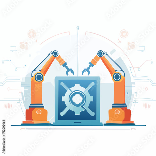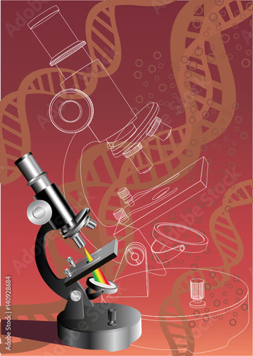 New technologies vector flat style design illustration. Human brain, microscope, dna symbol, eye, light bulb, hand holding test tube. Innovation, creative thinking, science research poster banner.