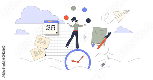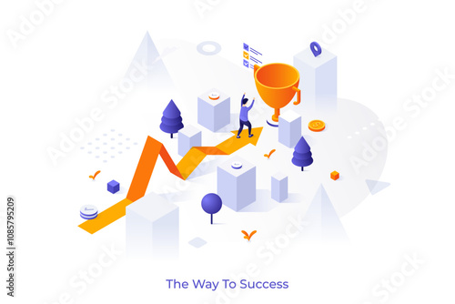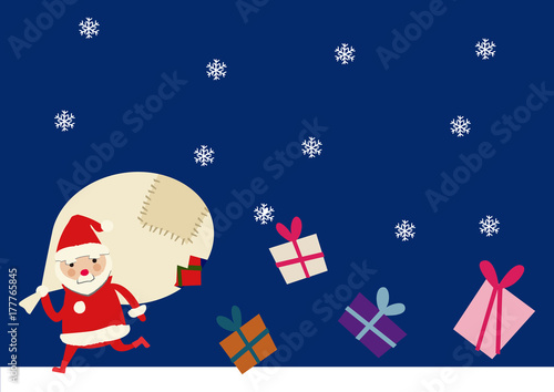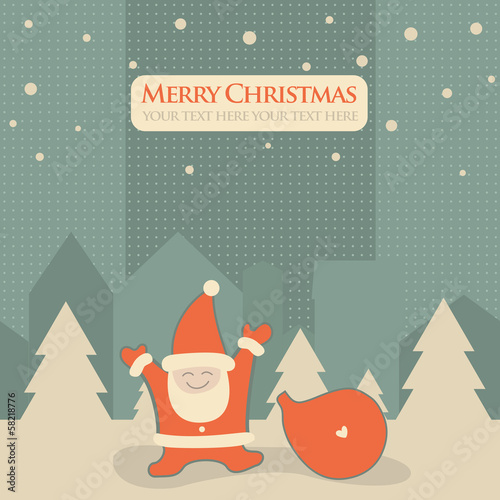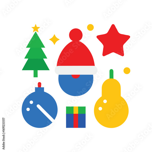 Happy new year poster with isometric santa head, creative chrismas tree and festive wrapped gift box, candy cane treats illustration. Winter seasonal holidays celebration and greeting card design