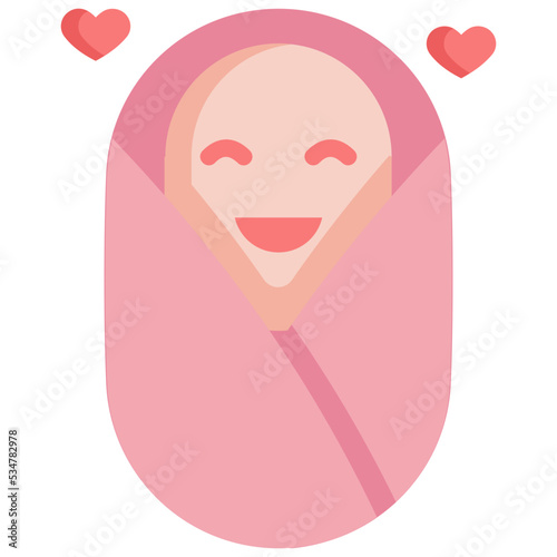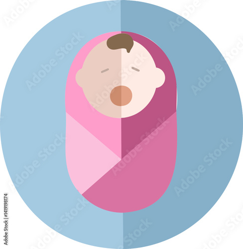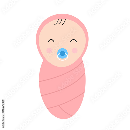 Newborn baby swaddle vector. Infant girl wrapped in pink blanket cartoon icon isolated on white background. Child born, birthday, baby shower concept