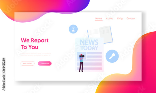 News vector website template, web page and landing page design for website and mobile site development. Press, mass media, daily news reports creating concept.