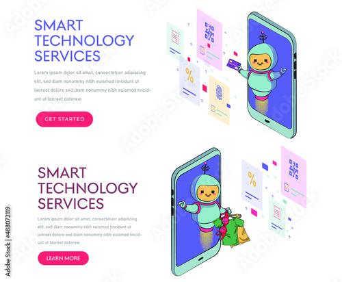 NFC vector website template, web page and landing page design for website and mobile site development. Near field communications technology, NFC-enabled mobile phones concepts.