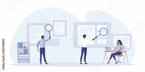 NFT crypto art auction, flat vector illustration. Auctioneer selling digital artwork, bidders making bids. Non fungible token, blockchain NFT marketplace, metaverse auction.