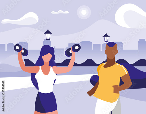 Noise pollution poster. Vector people suffering from loud noisy city sound illustration. Man woman dwellers covering ears to stop hearing tinnitus