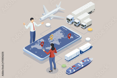 Noise pollution vector. Harmful loud noisy sound from car, plane, construction site, dog bad influence illustration. People protesting and requiring salience. Isometric 3d design