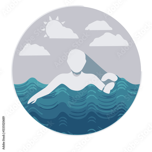 North penguin on ice in antarctica vector. Iceberg glacier with wild animal in paper cut 3d craft art banner. Travel expedition, science and environment concept